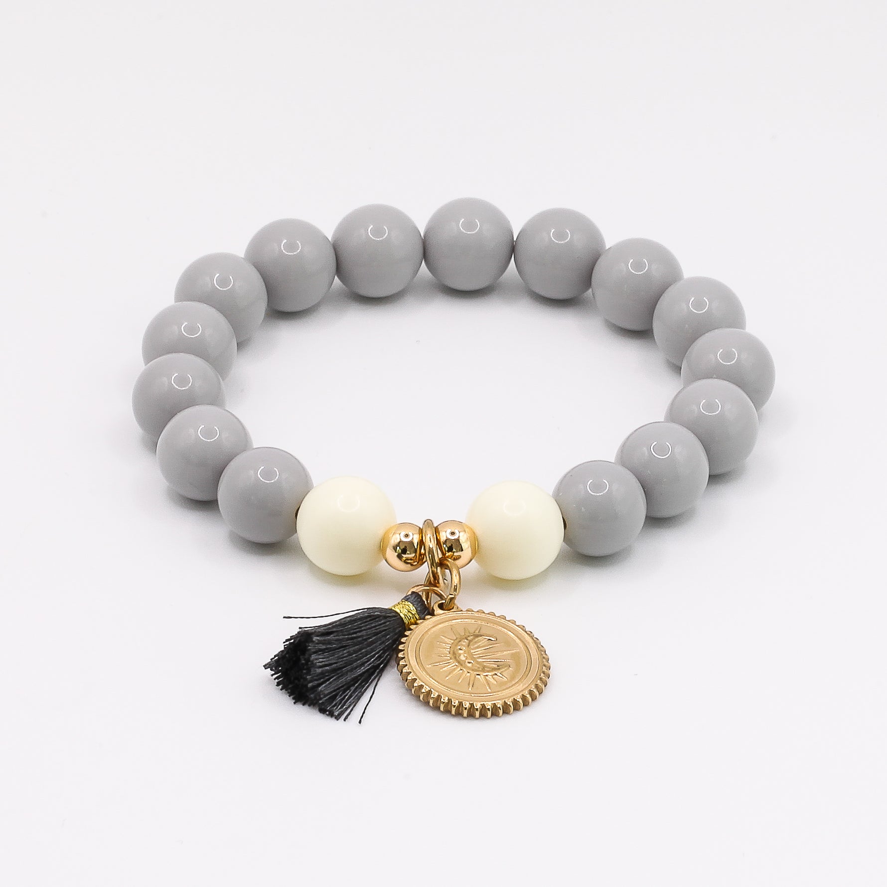 Beschreibung: Die hochwertigen Acrylperlen mit Hochglanzoptik sorgen für ein angenehm leichtes Tragegefühl. Mit einer Perlengröße von 12 mm und satten Farben sind sie ein echter Hingucker am Handgelenk. Der Acryllack macht dieses Armband herrlich unkompliziert und langlebig. Die goldenen Edelstahldetails und Charms verleihen dem Armband einen verspielten und zugleich edlen Look.