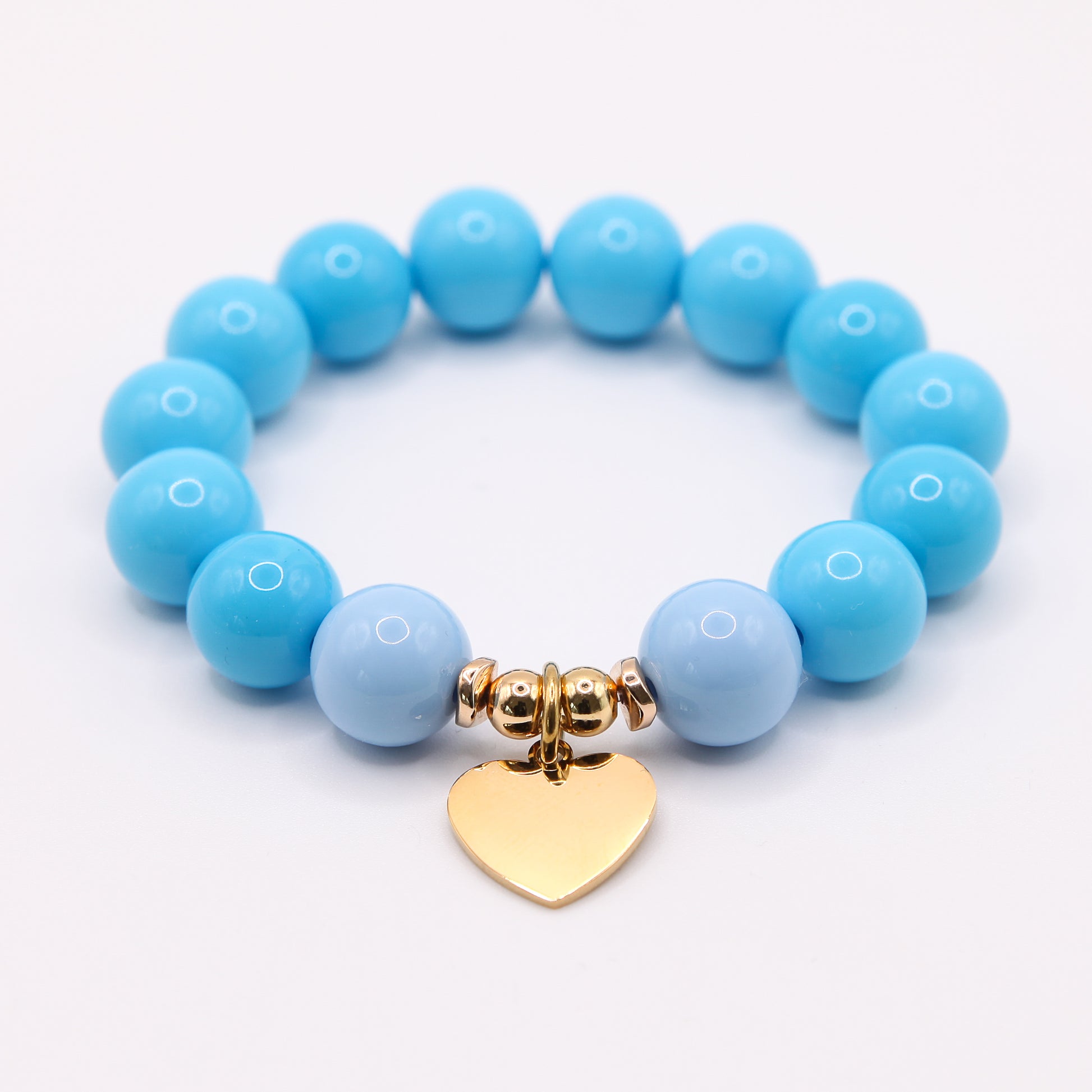 Beschreibung: Die hochwertigen Acrylperlen mit Hochglanzoptik sorgen für ein angenehm leichtes Tragegefühl. Mit einer Perlengröße von 14 mm und satten Farben sind sie ein echter Hingucker am Handgelenk. Der Acryllack macht dieses Armband herrlich unkompliziert und langlebig. Die goldenen Edelstahldetails und Charms verleihen dem Armband einen verspielten und zugleich edlen Look.
