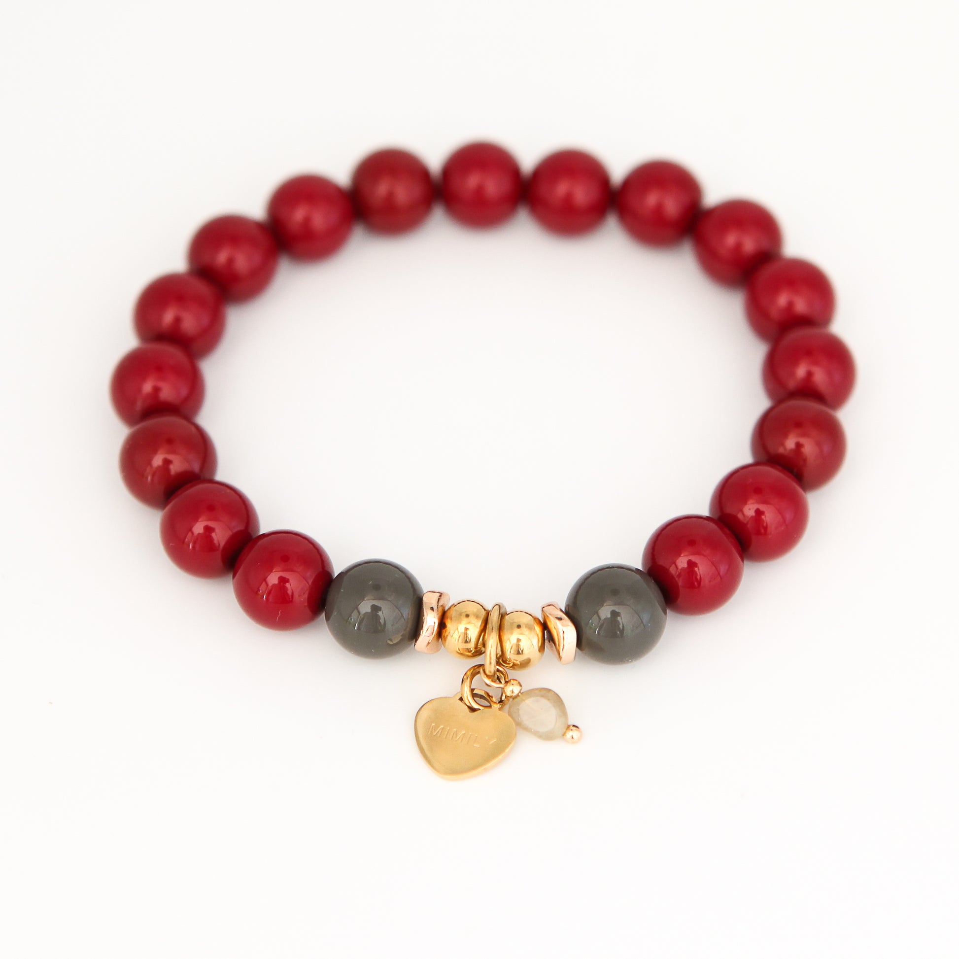 Beschreibung: Die hochwertigen Acrylperlen mit Hochglanzoptik sorgen für ein angenehm leichtes Tragegefühl. Mit einer Perlengröße von 10 mm sind sie unsere kleinsten Perlen. Dank der satten Farben dennoch ein echter Hingucker am Handgelenk! Sie lassen sich perfekt zu unseren größeren Perlenarmbänder kombinieren. Der Acryllack macht dieses Armband herrlich unkompliziert und langlebig. Die goldenen Edelstahldetails und Charms verleihen dem Armband einen verspielten und zugleich edlen Look.