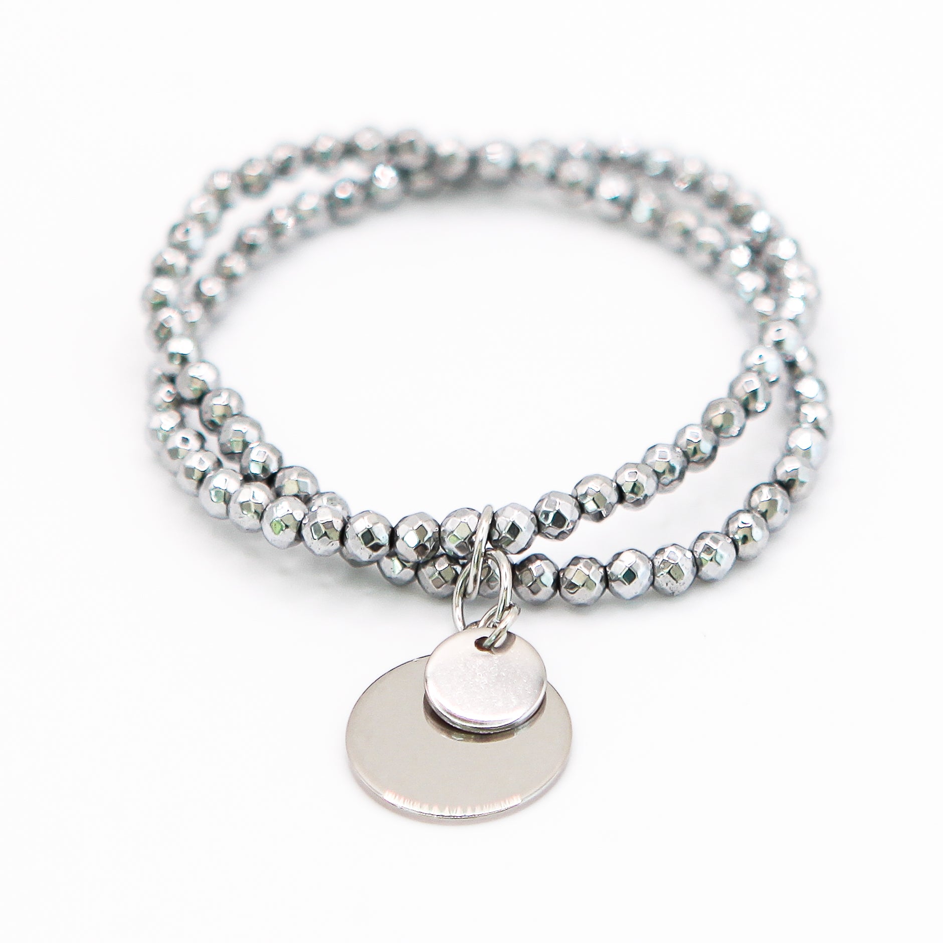 Material: Hämatit facettiert, Edelstahl, robuster Stretch-Magic Elastikfaden