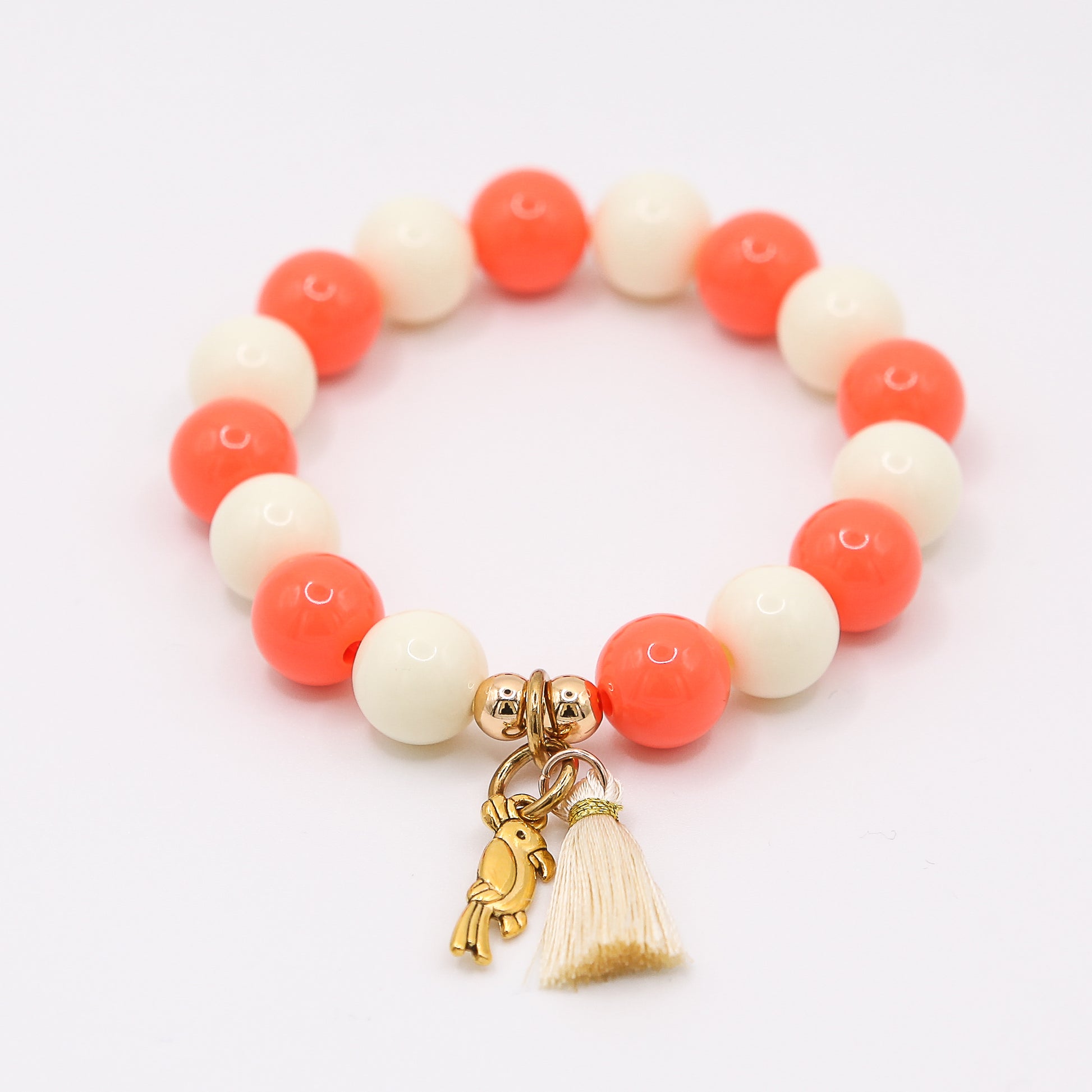 Beschreibung: Die hochwertigen Acrylperlen mit Hochglanzoptik sorgen für ein angenehm leichtes Tragegefühl. Mit einer Perlengröße von 12 mm und satten Farben sind sie ein echter Hingucker am Handgelenk. Der Acryllack macht dieses Armband herrlich unkompliziert und langlebig. Die goldenen Edelstahldetails und Charms verleihen dem Armband einen verspielten und zugleich edlen Look.