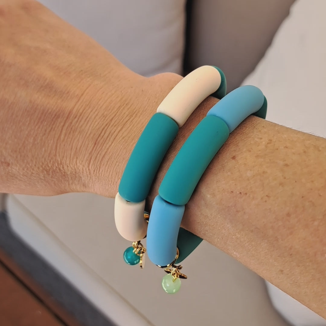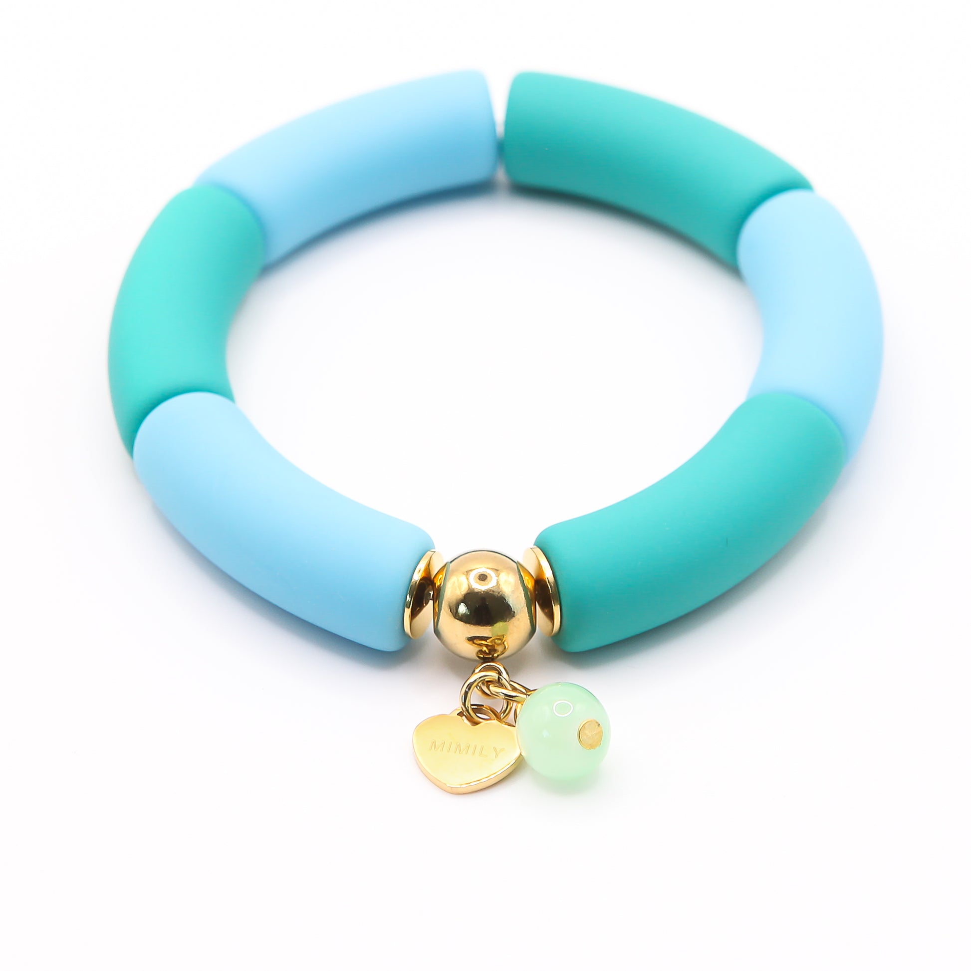 Beschreibung: Die hochwertigen Acrylelemente in Mattoptik sorgen für ein angenehm leichtes Tragegefühl und sind mit einem Durchmesser von 12 mm ein echter Hingucker am Handgelenk. Die Elemente in Mattoptik verfügen über eine samtige Oberfläche. Die goldenen Edelstahldetails und Charms verleihen dem Armband einen verspielten und zugleich edlen Boho Look.