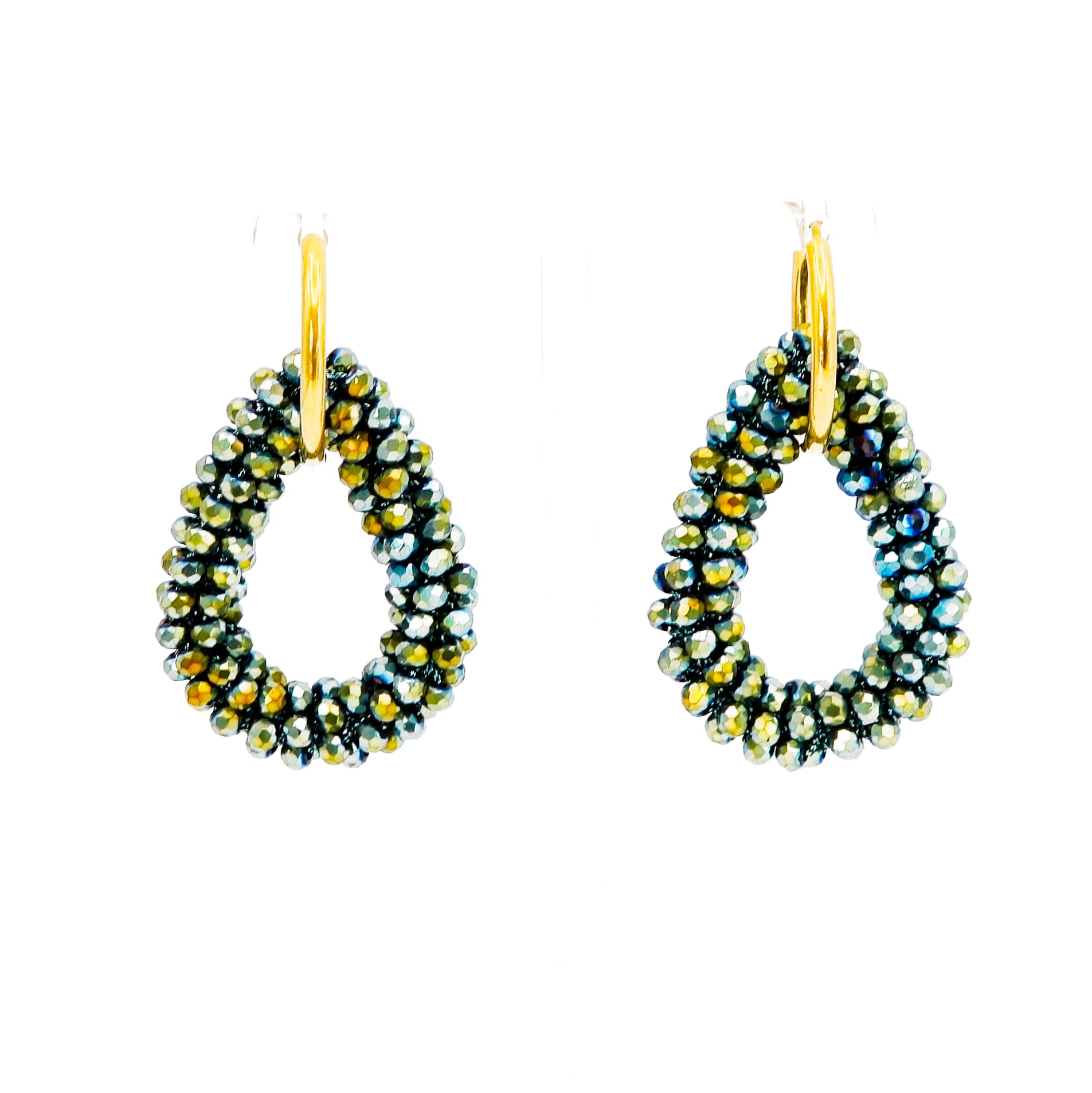 Beschreibung: Statement Ohrringe / Creolen mit einem Tropfen aus vielen kleinen, facettierten Funkelsteinchen. Der Tropfen ist in der Creole eingehängt, sodass man die Creolen auch einzeln tragen kann, falls man es mal schlichter mag. Die Ohrringe sind aus hochwertigen 316L Edelstahl (18K Gold) gefertigt. Creolenverschluß: Clickschließe