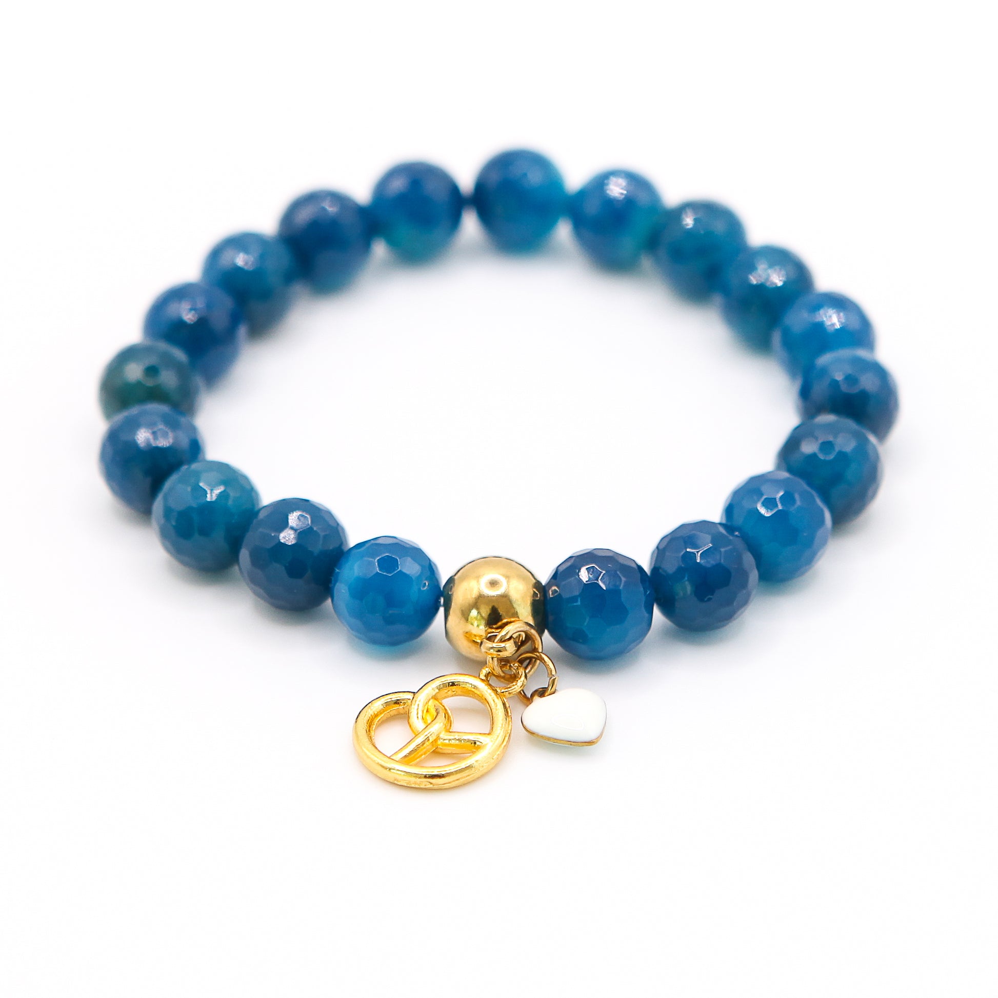 Beschreibung: Für unsere Edelstein Liebhaber gibt es dieses edle Armband aus petrol farbigem Jadestein. Durch ihren facettierten Schliff, schimmern die Steinperlen und passen perfekt zu einem glamourösen Wiesn Auftritt. Die Perlen haben einen Durchmesser von ca. 10mm. Die Brezel ist 18K Gold auf Edelstahl, garantiert Bier- und Champagnerduschen fest ;-)