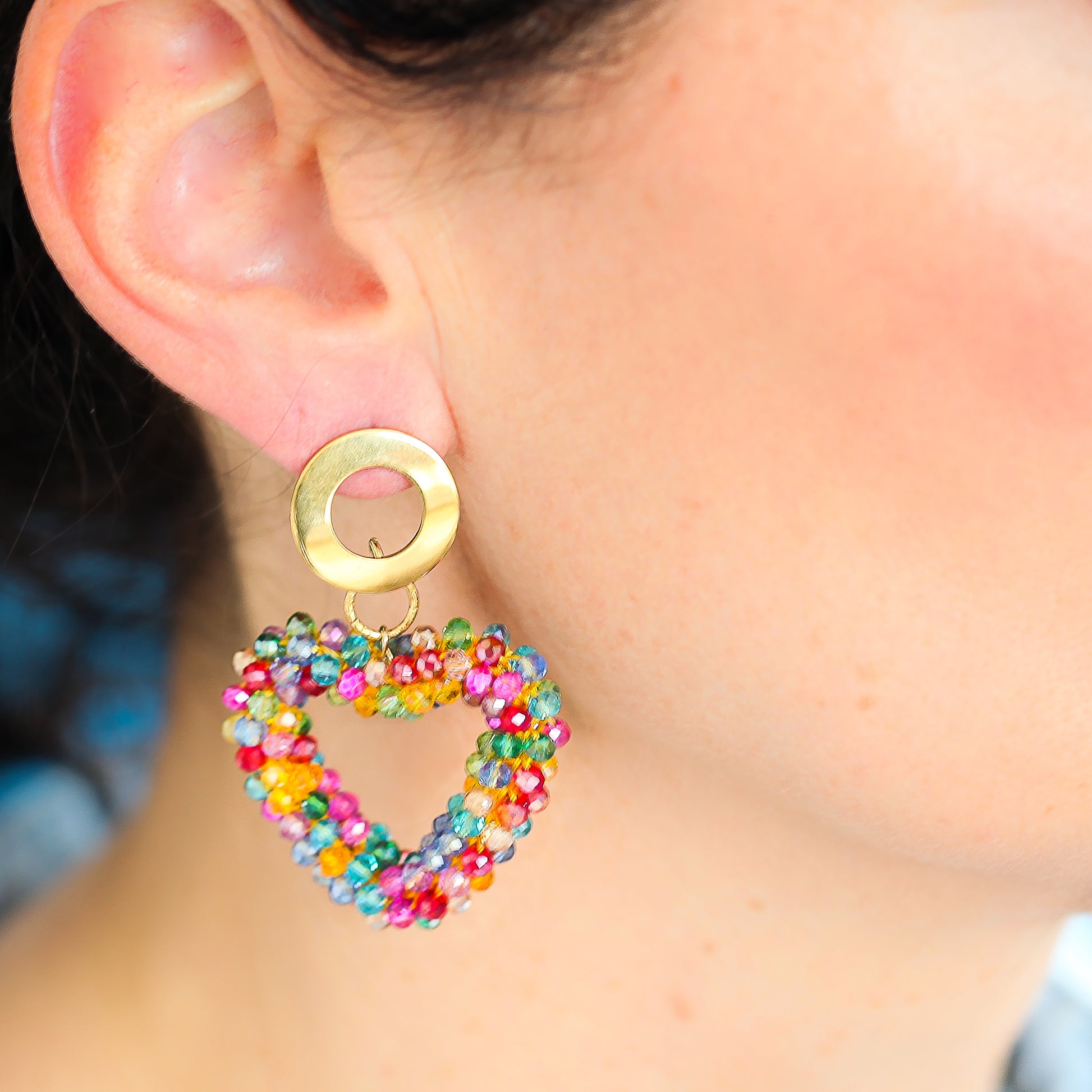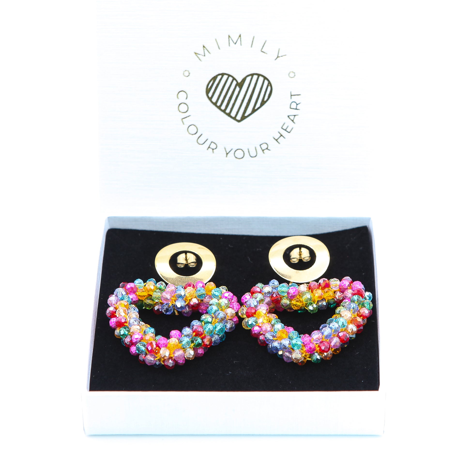 Beschreibung: Statement Ohrstecker in Herzform mit vielen kleinen facettierten Funkelsteinchen. Diese Ohrringe kann man wunderbar zur Jeans mit T-Shirt, aber auch sehr gut auf ein Sommerkleid, zu festlichen Anlässen oder zum Dirndl tragen. Die Ohrstecker sind aus hochwertigen 316L Edelstahl (18K Gold) gefertigt.