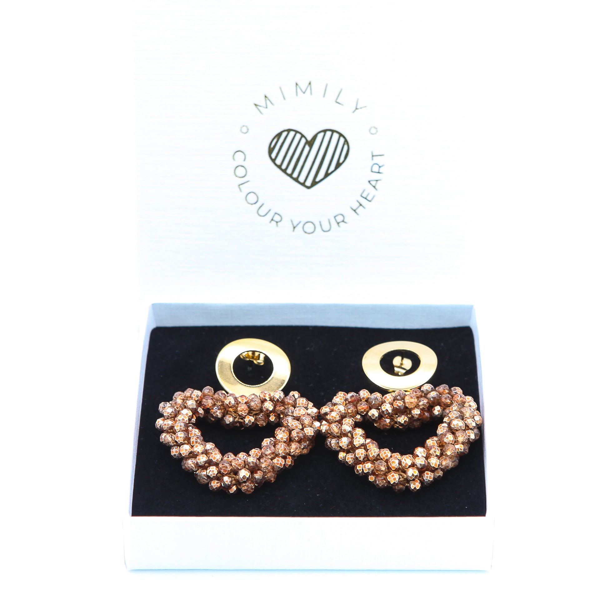 Beschreibung: Statement Ohrstecker in Herzform mit vielen kleinen facettierten Funkelsteinchen. Diese Ohrringe kann man wunderbar zur Jeans mit T-Shirt, aber auch sehr gut auf ein Sommerkleid, zu festlichen Anlässen oder zum Dirndl tragen. Die Ohrstecker sind aus hochwertigen 316L Edelstahl (18K Gold) gefertigt.