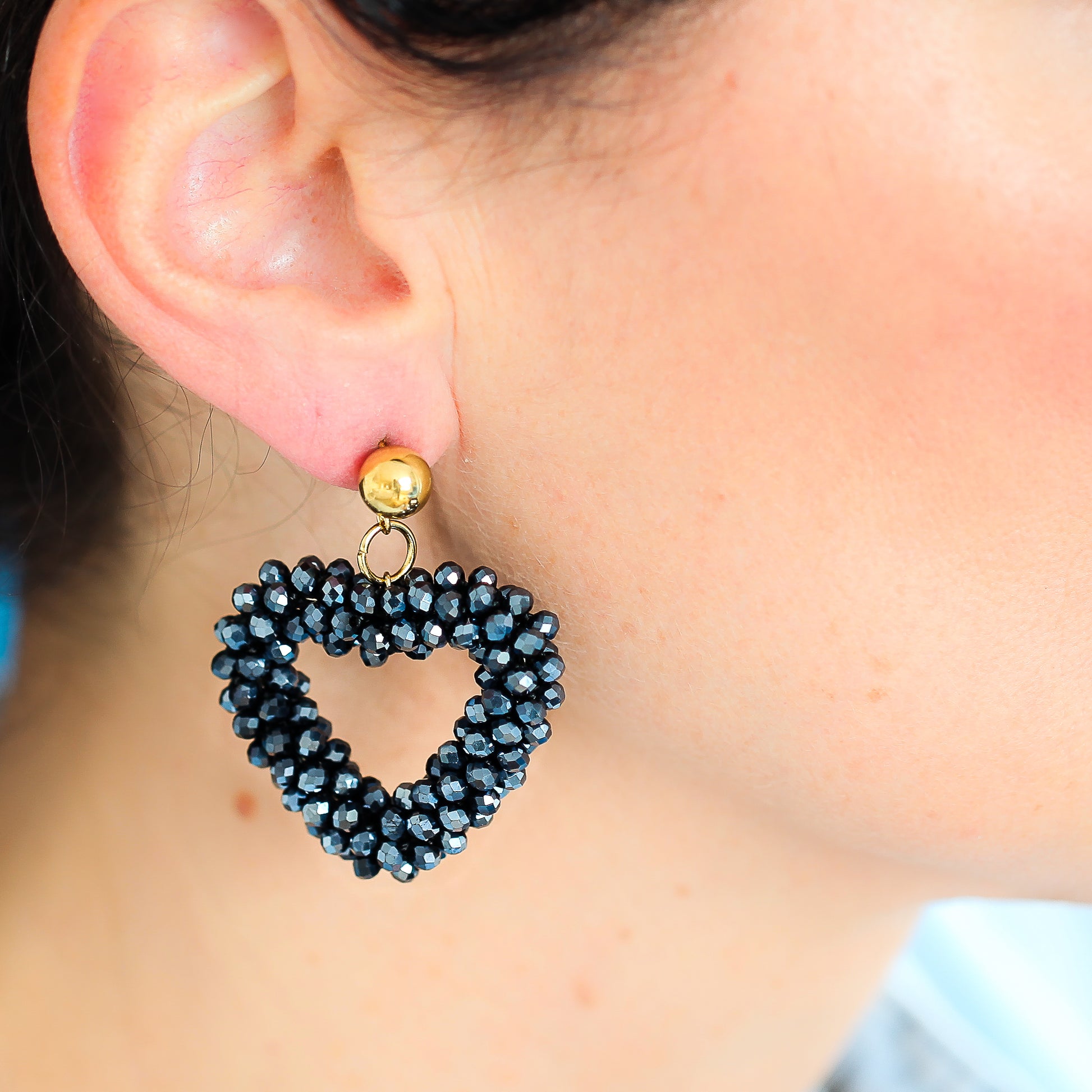 Ohrringe "Funkelherz" Nachtblau Kugel