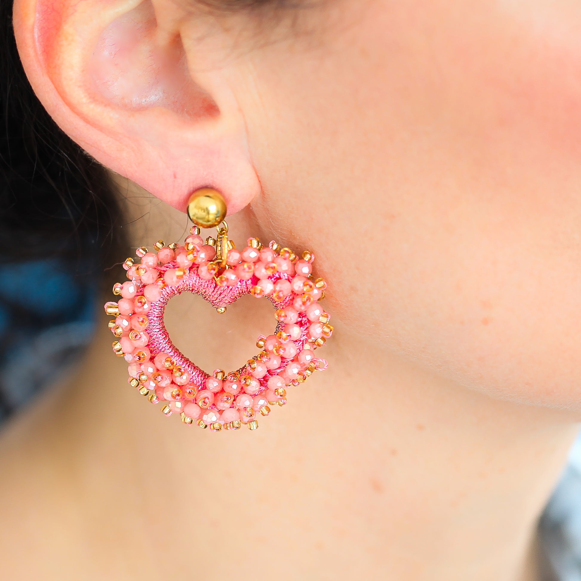 Beschreibung: Statement Ohrstecker in Herzform. Der Herzrahmen ist nach innen mit Textil umwickelt, außen herum ist das Herz mit vielen kleinen facettierten Funkelsteinchen geschmückt. Diese Ohrringe kann man wunderbar zur Jeans mit T-Shirt, aber auch sehr gut auf ein Sommerkleid, zu festlichen Anlässen oder zum Dirndl tragen. Die Ohrstecker sind aus hochwertigen 316L Edelstahl (18K Gold) gefertigt.
