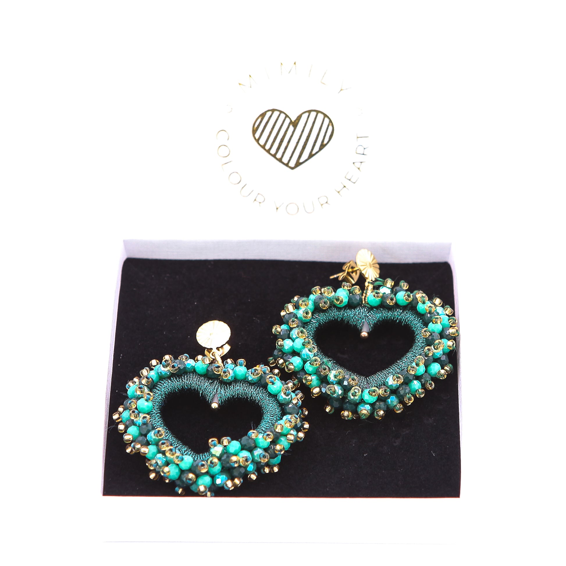 Beschreibung: Statement Ohrstecker in Herzform. Der Herzrahmen ist nach innen mit Textil umwickelt, außen herum ist das Herz mit vielen kleinen facettierten Funkelsteinchen geschmückt. Diese Ohrringe kann man wunderbar zur Jeans mit T-Shirt, aber auch sehr gut auf ein Sommerkleid, zu festlichen Anlässen oder zum Dirndl tragen. Die Ohrstecker sind aus hochwertigen 316L Edelstahl (18K Gold) gefertigt.