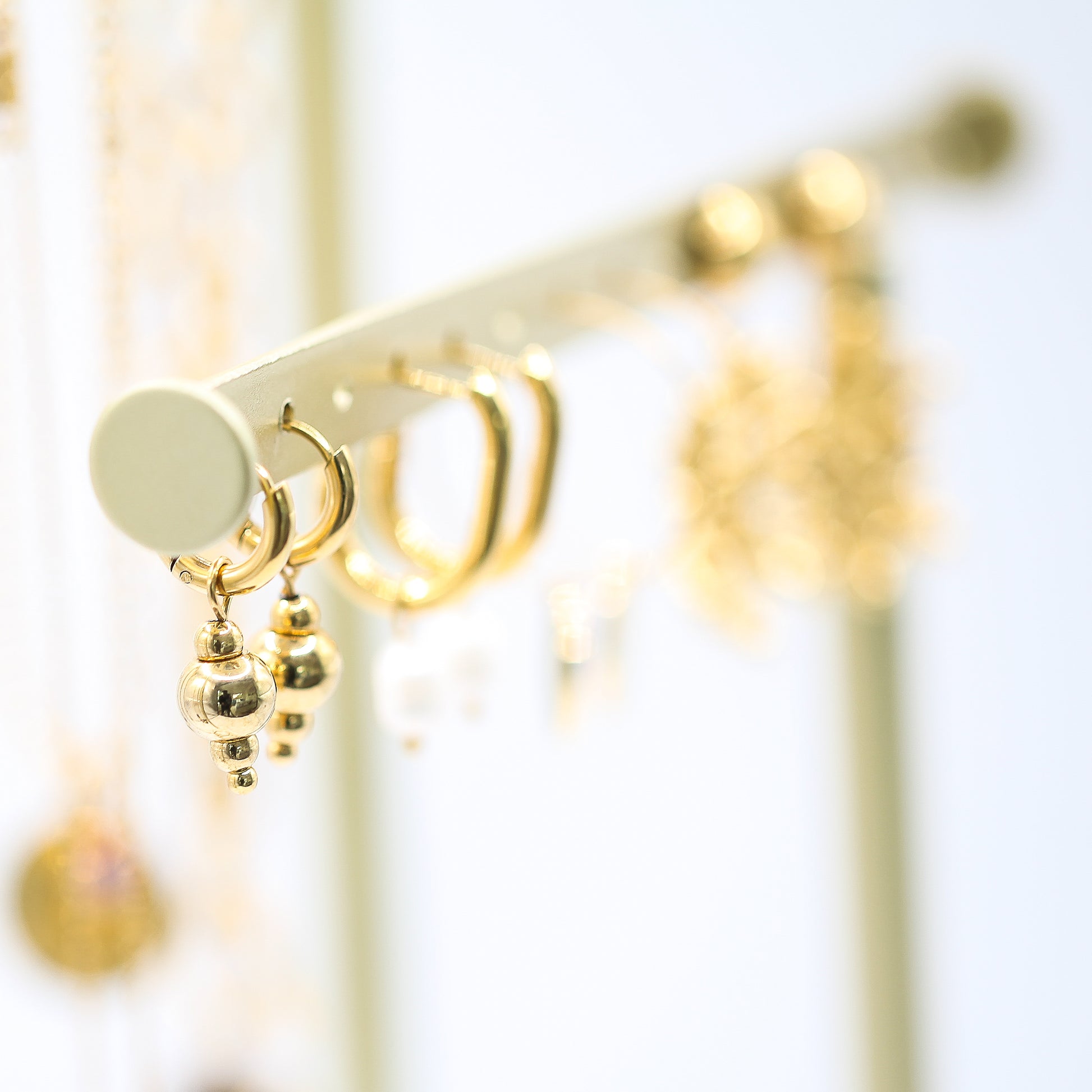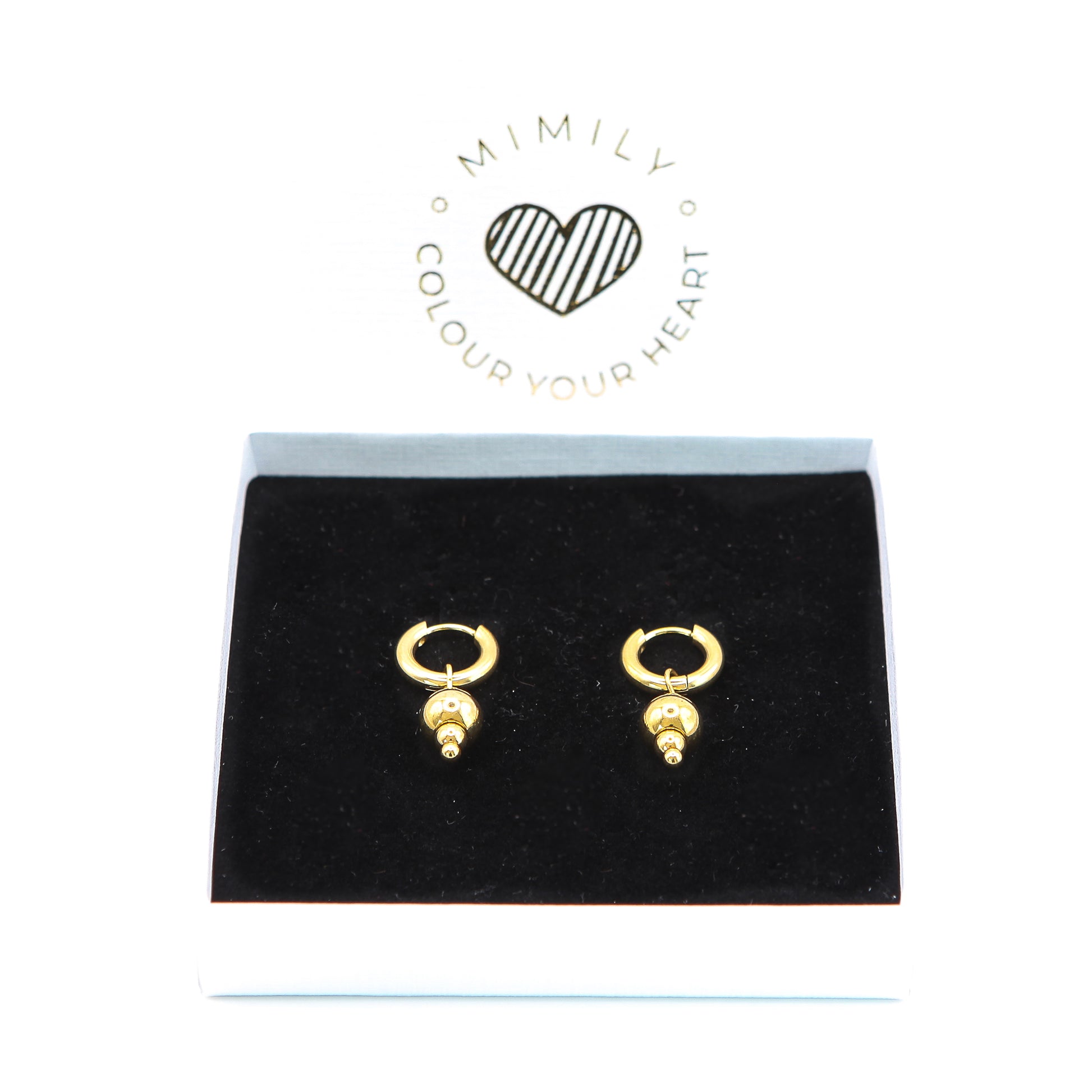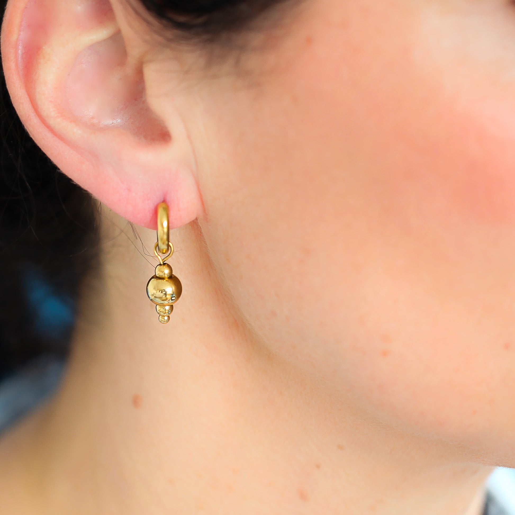 Beschreibung: kleine, trendige Kreolen Ohrringe mit Goldperlen-Hänger. Eine Allzweckwaffe für Tag und Nacht, Winter wie Sommer. Je nach Bedarf kannst Du das Perlenelement abnehmen, den Ohrring einzeln tragen oder mit anderen Charms ersetzen oder ergänzen. Alle Materialen sind aus hochwertigen 316L Edelstahl mit 18K Gold plattiert.
