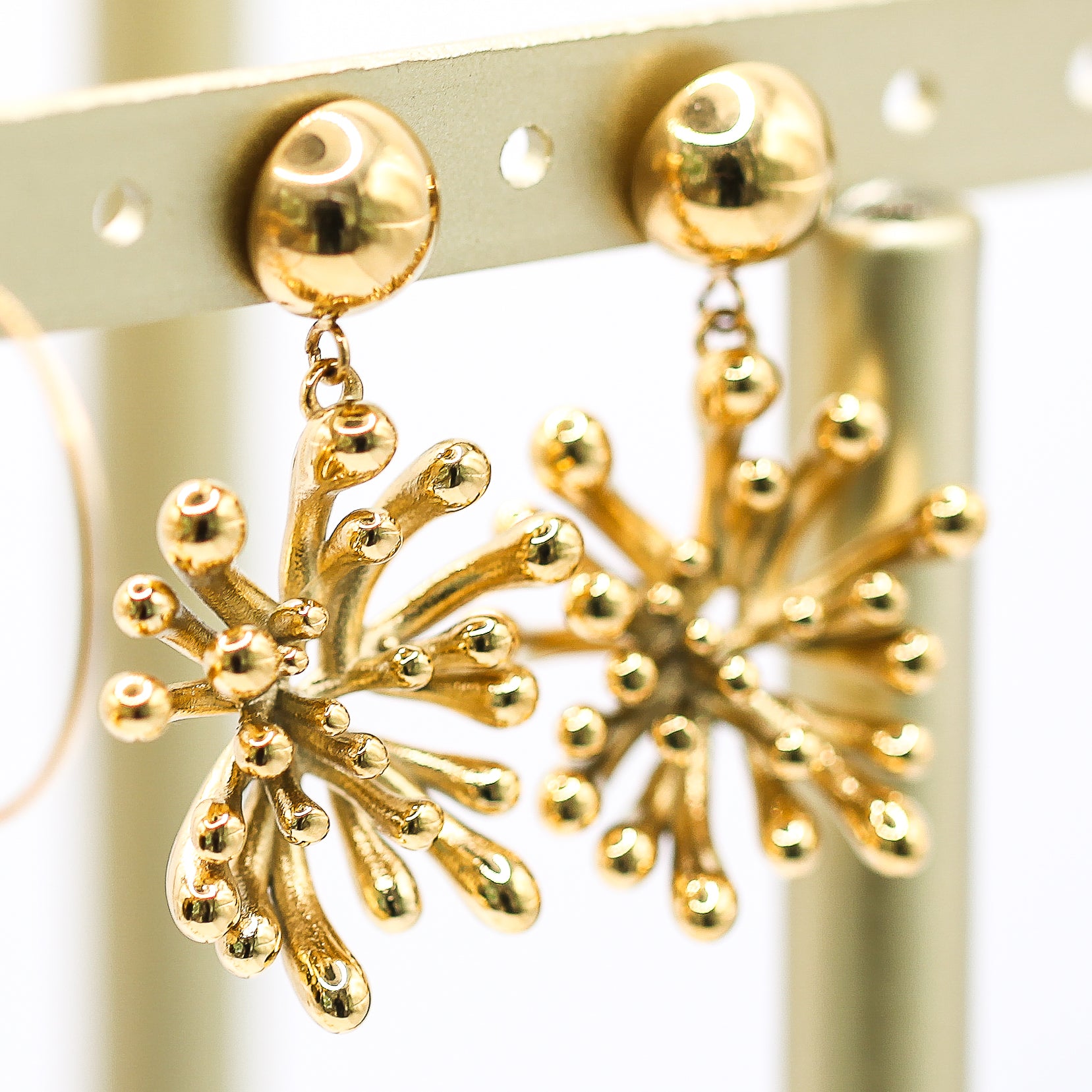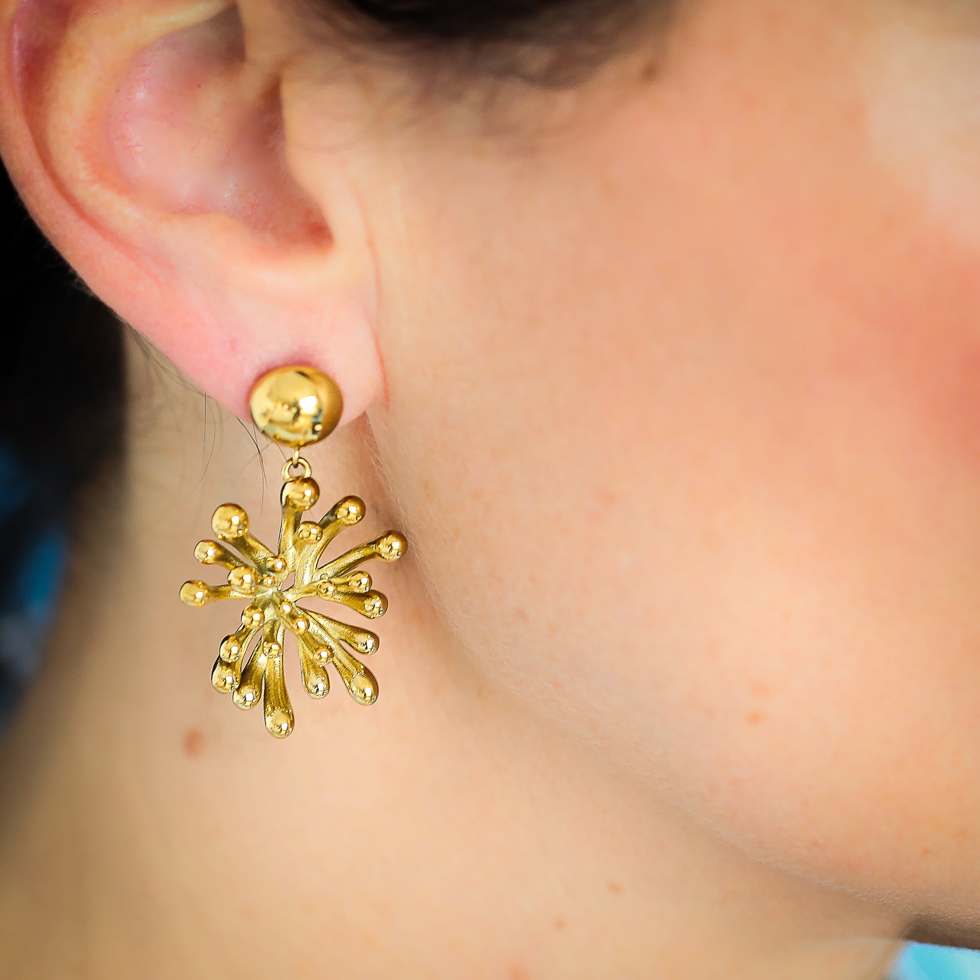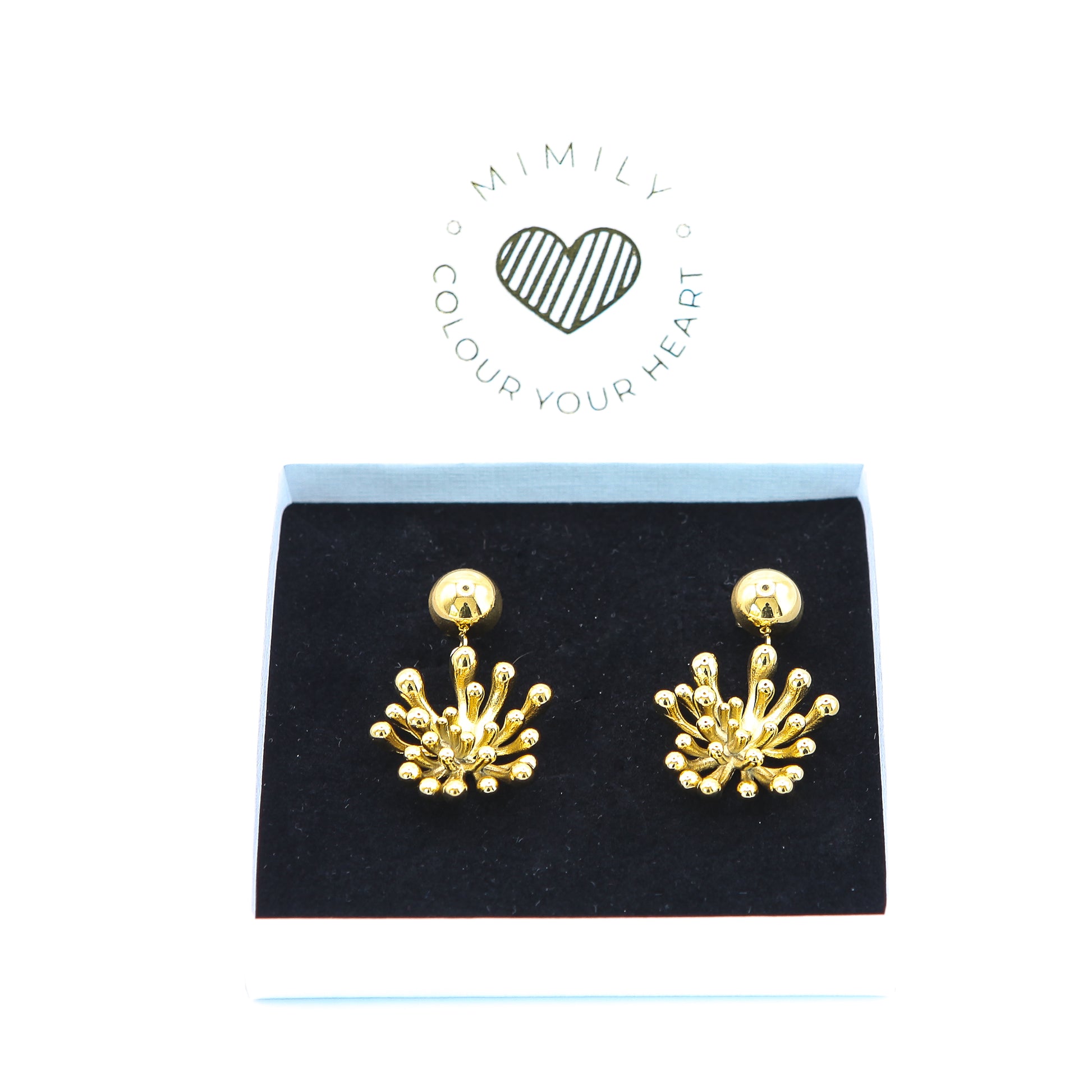 Beschreibung: wunderschöne, massive Statement Ohrstecker. Sie erinnern an Wasserspritzer oder an ein kleines Feuerwerk. Chunky, aber dennoch ein angenehmes Tragegefühl. Alle Materialen sind aus hochwertigen 316L Edelstahl mit 18K Gold plattiert.